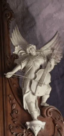 The upper floor of the organ case is reserved for the divisions of the 2nd and 3rd keyboards, both are enclosed in a single swell box.Originally, however, the whole organ was enclosed in a large swell box, with a mute facade in front of it