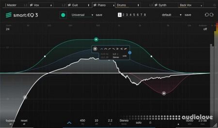 smart:EQ live has your back, so you can focus on the things that really count when mixing live.Latency-free smart:engineTM for any live audio situation.Optimally balanced sound within seconds.Additional safety net for hassle-free mixing.Perfect your live workflowReal-time mixing assistant for enhanced sonic performanceYour experience makes the differencesmart:EQ live analyzes the audio signal, interprets it musically and creates a spectral balance in real-time