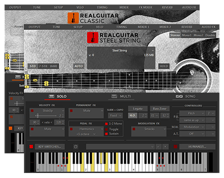 RealGuitar 6 is a combo of two instruments: Classic – all of our original guitar models with loads of new features, and Steel String – the debut of new guitar sample set with five es and three tunings for each.