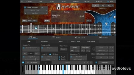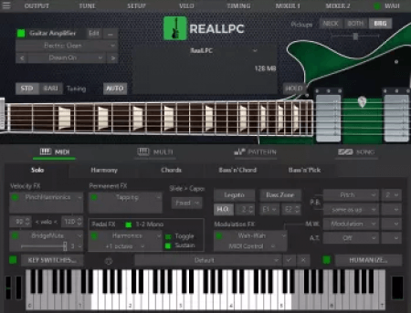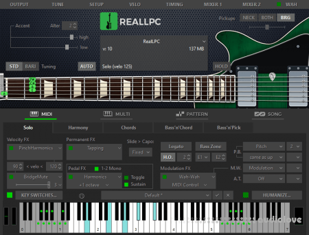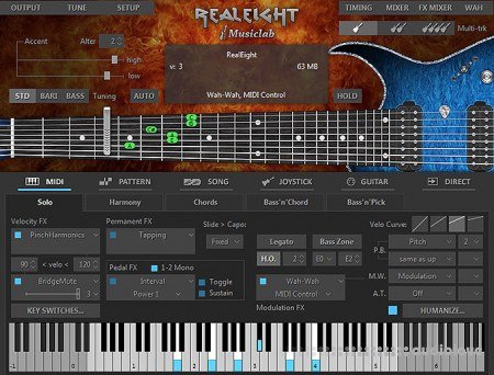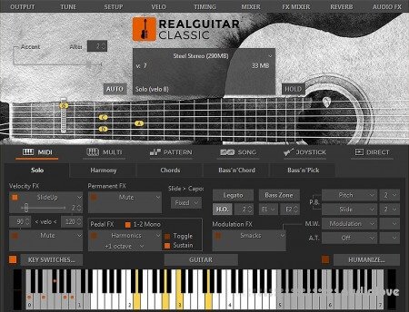 RealGuitar is a sample-based virtual instrument with an innovative approach to guitar sound modeling and guitar part performing on keyboard.